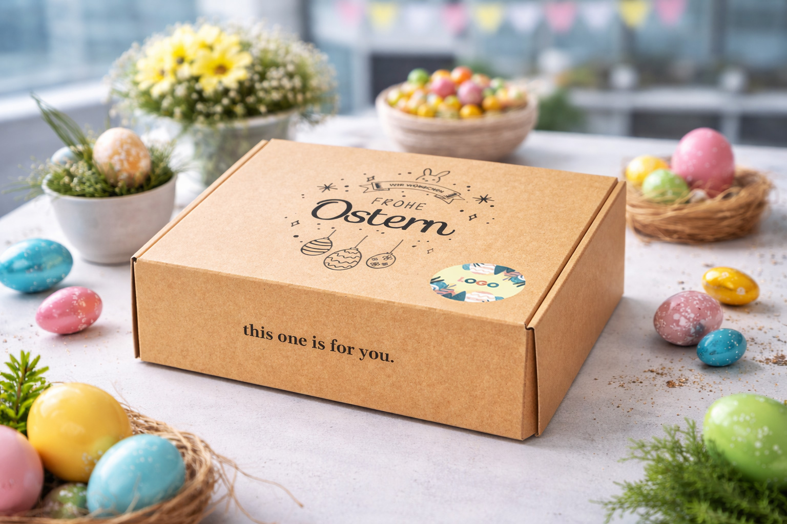 Die kleine Osterbox ist ein hochwertiges, nachhaltiges Ostergeschenk für Mitarbeiter, Kunden oder Geschäftspartner. Regional zusammengestellt, liebevoll verpackt und ideal für den Versand direkt nach Hause.