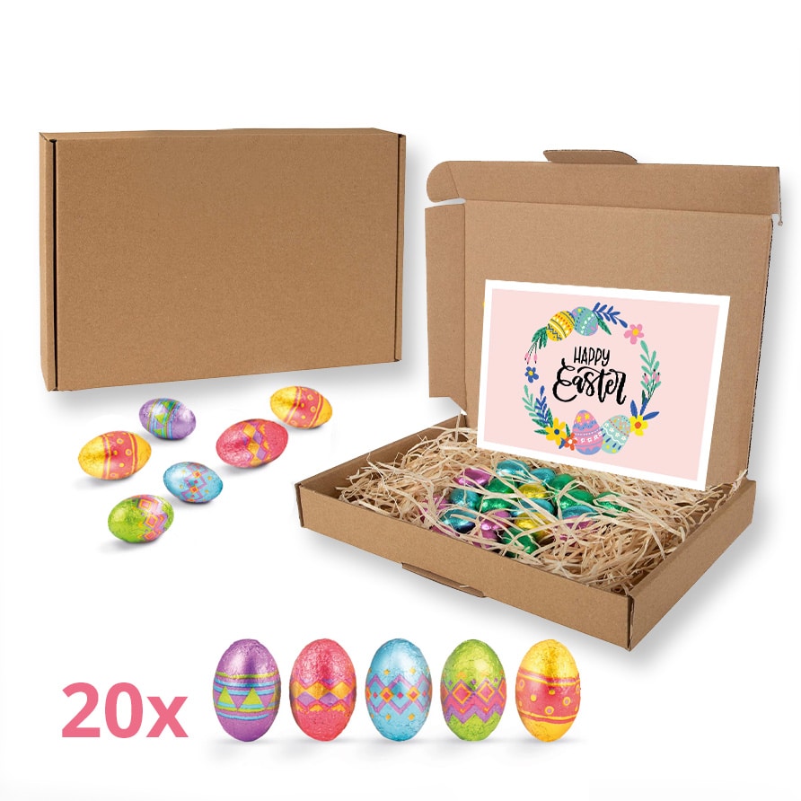 Jedes Mitarbeitergeschenk wird in unseren Werkstätten per Hand verpackt und ist gefüllt mit einer 20 Ostereiern. Mit der Osterbox wollen wir besonders eins, den Empfängern eine kleine Freude machen.