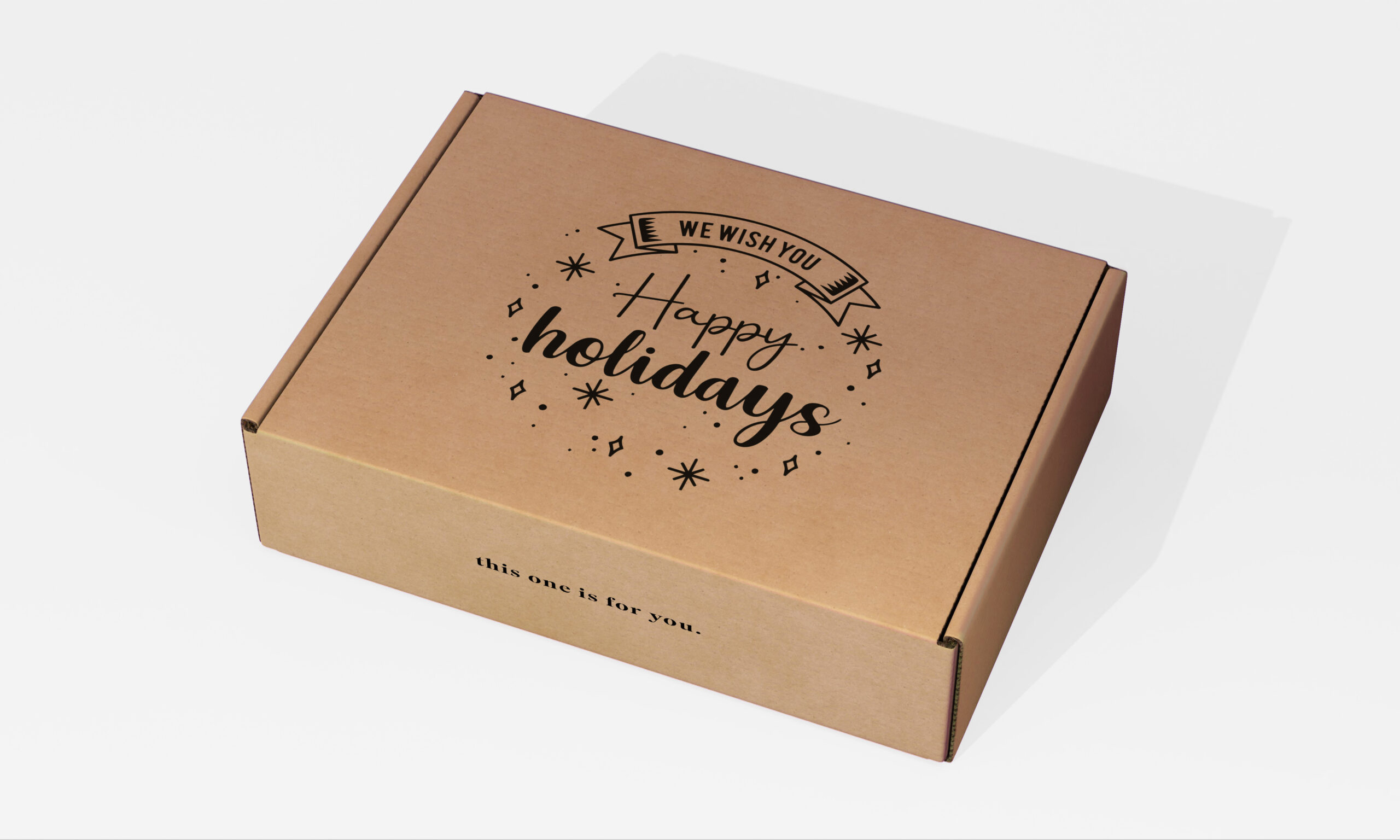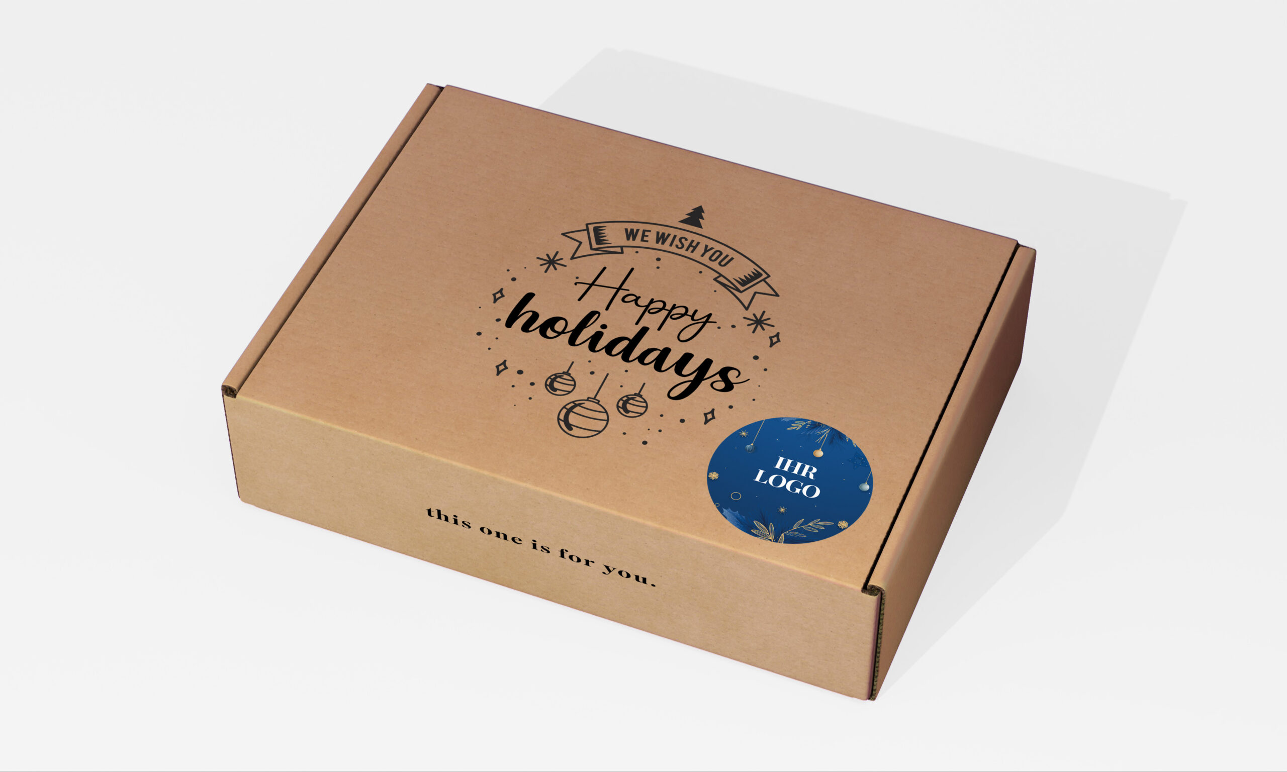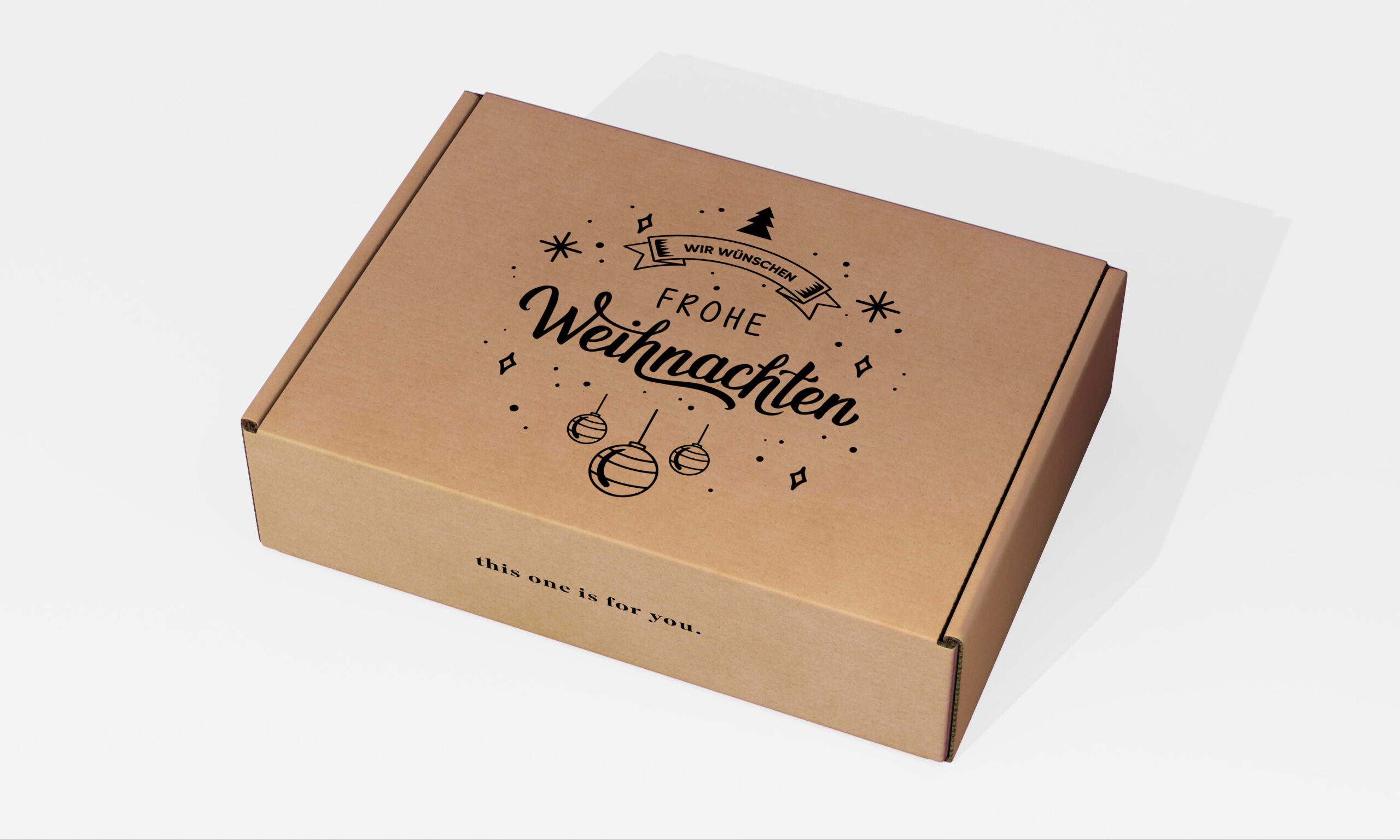 Wir liefern Ihre weihnachtlichen Produkte in einer nachhaltigen Geschenkbox. Sie können aus zwei Motiven wählen.